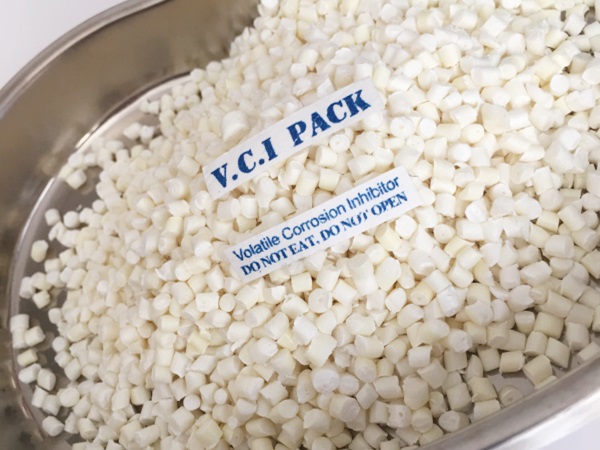配比比例: 在通常情況下,VCI防銹母粒的添加量為塑料粒子的2%。(色母粒添加量不能超過防銹母粒含量的10%),通常情況下防銹膜的標準厚度為100μ.
