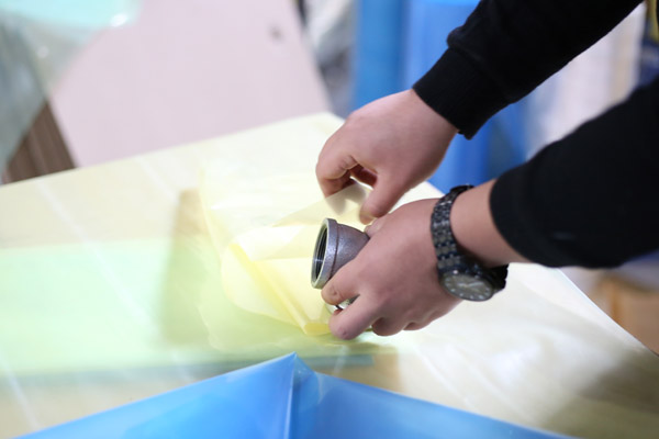 4、包裝過程---被包裝金屬和防銹膜中間,如有紙墊板、木類、塑料類隔板等阻隔材料,特別注意阻隔材料不能直接接觸金屬產(chǎn)品。以免阻隔材料含S、CL化學(xué)成分,影響防銹效果